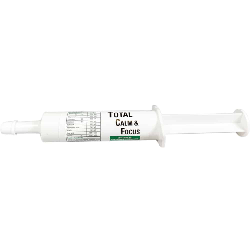 Total Calm& Focus Paste is a naturally formulated paste developed to calm nervous and anxious horses while enhancing focus. It also helps support normal Cortisol (stress) levels. Total Calm& Focus paste calms your horse without a drowsy effect, and it may reduce the possibility of digestive colic.